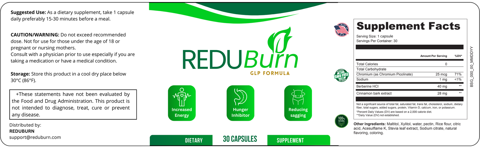 ReduBurn is a 100% natural supplement, free from harmful chemicals or stimulants, and most users report no side effects.